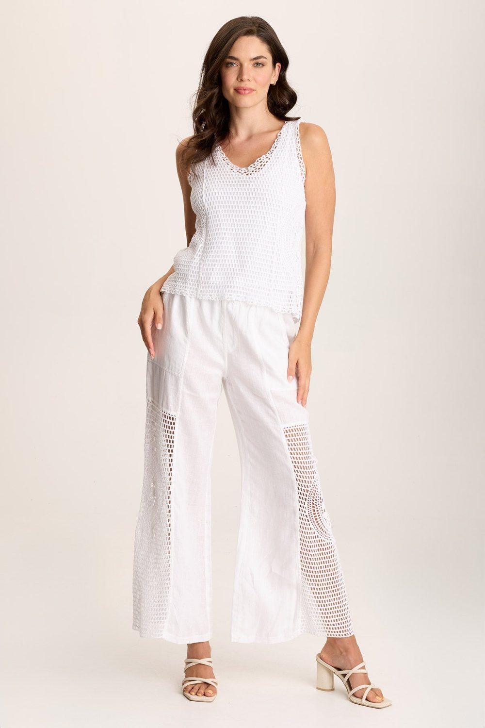 Bra-friendly straps and a double-layer design featuring a cotton crochet overlay make this v-neck a bohemian dream. A gently flared silhouette keeps things flattering and fun.
