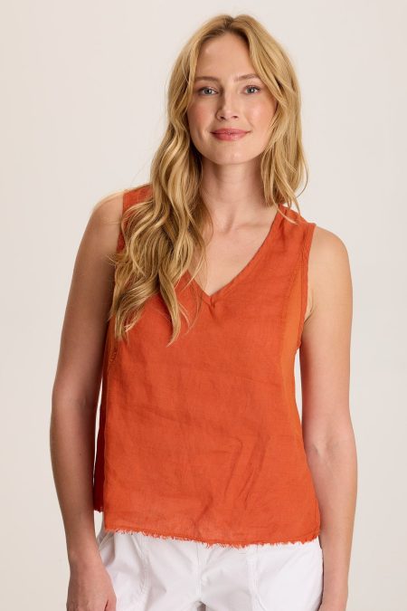 $204.00Classic as can be, Estine features a roomy silhouette with a raw-edge hem, bra-concealing straps, and v-neck cut in Lavish Linen. Lavish Linen: 78/22 Linen/Cotton 2×1 Rib Contrast: 95/5 Cotton/Spandex Center Front: ~15″ Center Back: ~21″ Color Description: Burnt Orange Preshrunk Machine washable Imported MODEL Hunter is wearing size XS…