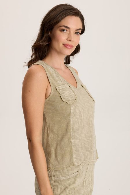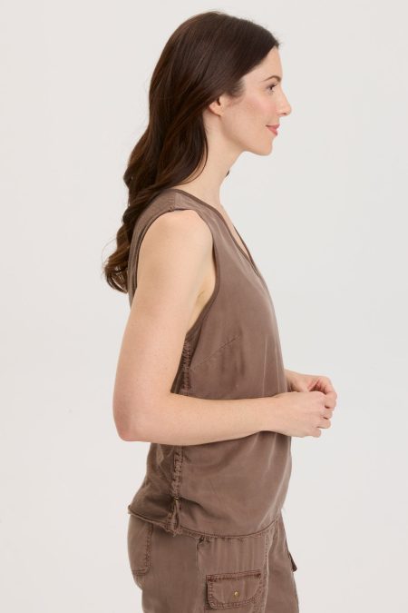 $91.00A pretty tank with unusual details. Ileana features a cinchable side seam with brass stopper and a contrast back panel. Soft Twill: 100% Tencel. Effie Slub Jersey Contrast: 60/40 Cotton/Modal. Center Front: ~15.75″. Center Back: ~23″. Color Description: Weathered woodland brown. Preshrunk. Machine washable. Imported. MODEL Genevieve is wearing size…