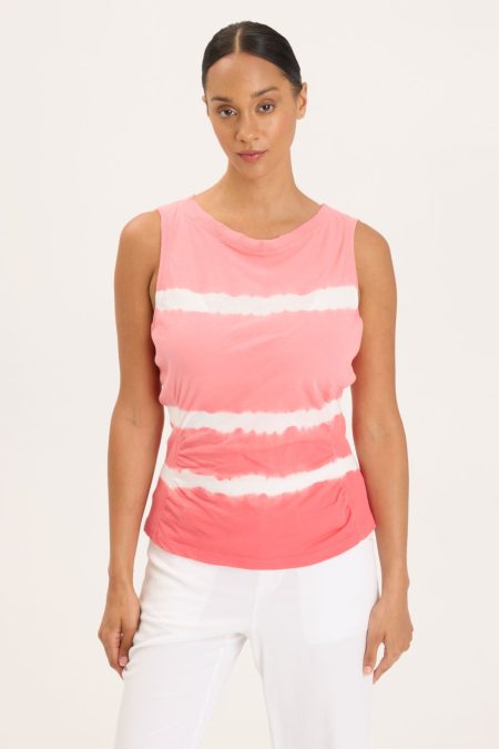 $322.00Rib sides panels paired with a shirred body create this fun classic tank. Abbott Jersey: 100% Cotton. 2×1 Rib Inserts: 95/5 Cotton/Spandex Center Front: ~21″ Center Back: ~22.5″ Color Description: White striped vibrant coral tie dye Preshrunk Machine washable Imported MODEL August is wearing size X-Small. Height: 5’9” | Bust:…